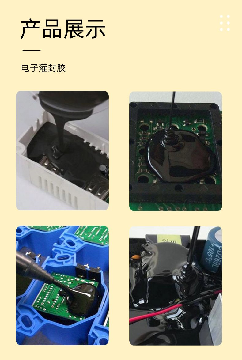 防水防潮防霉防尘,固定元器件,耐化学介质,耐黄变,耐气候老化。完全符合欧盟 ROHS