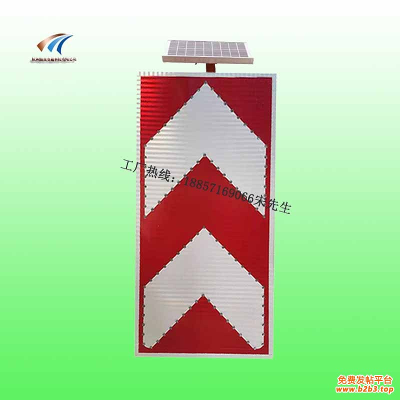 太阳能诱导标志是以单晶硅太阳能电池组件为能源,它利用太阳能电池板将白天的阳光转换成电能贮存于蓄电池中,当夜幕降临、视线昏暗或雨雾天气等视线不佳情况下,线性诱导标志牌上的发光二极管自动启动闪烁,通过LED发出亮光来勾画图案轮廓,传达交通信息。主动发光线性标志发出的光线特别明亮、醒目,具有强烈的警示作用。在无电源的高速公路、经常移动的施工现场及危险地段,这种可主动发光的交通标志显现出了强大的作用,其可视距离是以反光膜作为反光材料的标志牌的数倍,其动感效果也是普通标志牌所不可替代的警示效果。特别在现代的城市道路中,夜晚驾驶者很难迅速认清被淹没在霓虹灯光、广告灯箱中的传统交通标志,此时发光标志的主动发光性能显得尤为重要。