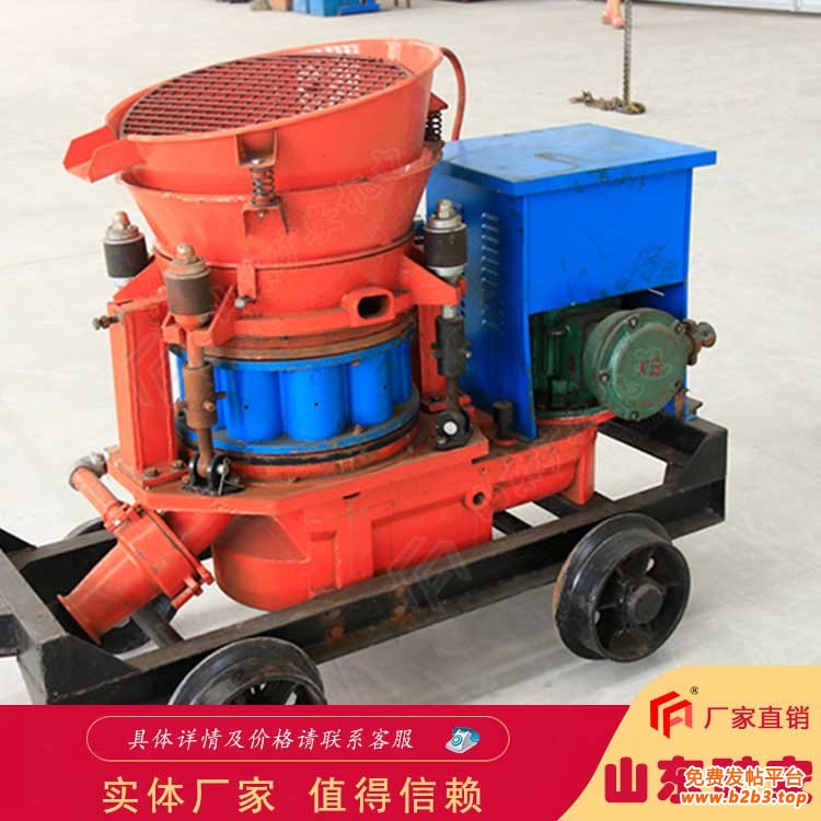 送料系统:主要有料斗、振动器、转子体等组成。 按一定配比拌好的拌合料,在振动电机的强制震动下,经筛网进入转字体料腔,然后由压缩空气将转子体内的拌合料压人旋流器内,旋流器与喷砂管用快速接头连接,喷砂管的末端连接喷头座和喷管,zui后经喷管喷向受喷面。