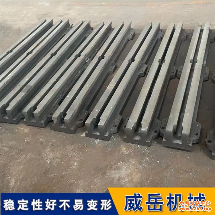 材质适配:轻载(≤5t)选HT250灰铸铁,中载(5-20t)选HT300灰铸铁,重载(>20t)必选QT600球墨铸铁(抗拉强度≥600MPa)。重工企业曾因重载设备选了HT300地轨,使用3个月后地轨中部下凹0.03mm,导致设备同轴度误差超0.08mm,返工更换QT600地轨后问题解决。