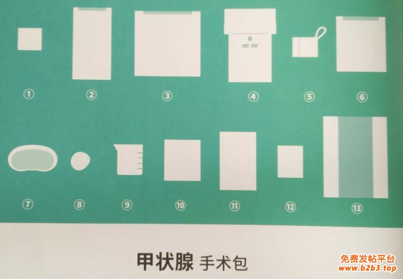 手术包配置:擦手巾(40*40cm)2块、头单1条、脚单1条、甲状腺单1条、腹部垫1条边单2条、弯盘1个、纱布棉球10个、量杯(100ml)2个、一次性使用治疗巾1条、手术单1条、一次性使用纱布垫2条、一次性使用包布1条