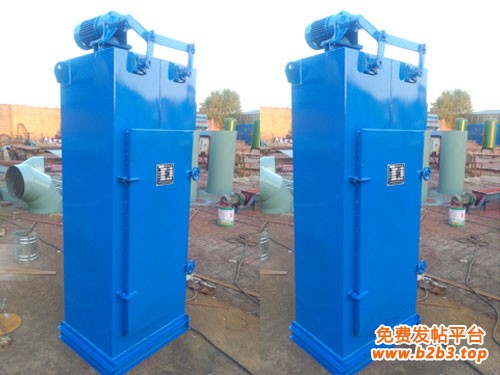 含尘气体由进气口进入灰斗或通过花板孔两种方式进除尘滤袋。含尘气体透过除尘滤袋变为净气,进入箱体,再经箱体上部排放口,由风机排走。粉尘积附在除尘滤袋内表面且不断增加,使袋式除尘器的阻力不断上升,当阻力上升到约1500pa时,为了使袋式除尘器继续工作,需定期滤袋上的粉尘,具体清灰时,选关闭顶上风机,启动摇动电机,由于摇动电机上偏心作用,带动连杆使摇动轴左右来回转动。除尘滤袋就呈波纹状态,使粉尘掉下,卸出待清灰完即停止摇动电机,重新启动风机,使袋式除尘器重新开始工作,上述动作是通过控制仪来自动控制完成的。
