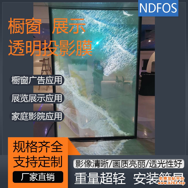 本公司经营各种进口投影膜,根据使用目的不同可分为:透明背投型、灰色背投型和白色背投型。 以平滑的聚酯薄膜为材料,由具有扩散性的粘着层、硬处理层、防静电层构成,可以方便的用水贴在玻璃及透明亚克力板上使用。型号齐全、使用范围广泛,宽幅1.524m,长度30米.可任意裁剪! 大量批发零售,欢迎来电咨询!