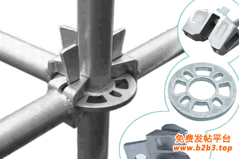 厂家盘扣式脚手架产品既能省材料遗落或整理的麻烦,横杆、斜杆均为插销式的连接方式,杆件与立杆均可确保连结的牢固度,接头依管的圆弧制造,与立杆的钢管整面接触,然后敲紧插销,之后为三点一起受力可确保牢牢固定,增加其结构的强度并传递水平力,采用满焊来固定横杆头与钢管身,以铆钉将斜杆头与钢管身固定的斜杆头为可转动接头,立杆以四方管连接棒为主的连接方式,在立杆上已把连接棒固定,就不需要用其它接头的组件再组合了;