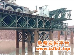 钢便桥具有结构轻巧、拆装方便、使用范围广泛等特点,为了让大家了解钢便桥,钢便桥租赁厂家为大家简述钢便桥的特点。 钢便桥由上、下弦杆、竖杆及斜杆焊接而成,上下弦杆的端部有阴阳接头,接头上有杵架连接销孔。钢便桥的弦杆由两根10号槽钢(背靠背)组合而成,在下弦杆上,焊有多块带圆孔的钢板,在上、下弦杆内有供与加强弦杆和双层桁架连接的螺栓孔,在上弦杆内还有供连接支撑架用的四个螺栓孔,其中间的两个孔是供双排或多排桁架同节间连接用的。靠两端的两个孔是跨节间连接用的。多排钢便桥作梁或柱使用时,要用支撑架加固上下两节钢便桥的接合部。