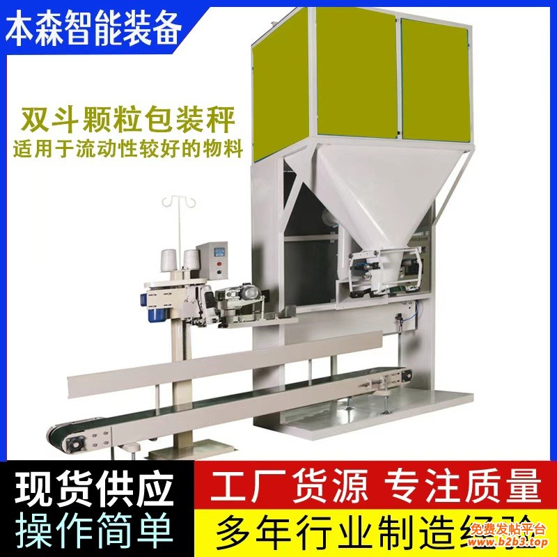 双斗协同颗粒包装秤自动化设备是一款针对各类颗粒状物料(如杂粮、饲料、塑料颗粒、化工颗粒等)设计的自动化包装设备,核心依托双斗交替协同工作模式,搭配精准称重传感器与智能控制系统,实现计量、灌装、封口一体化作业。