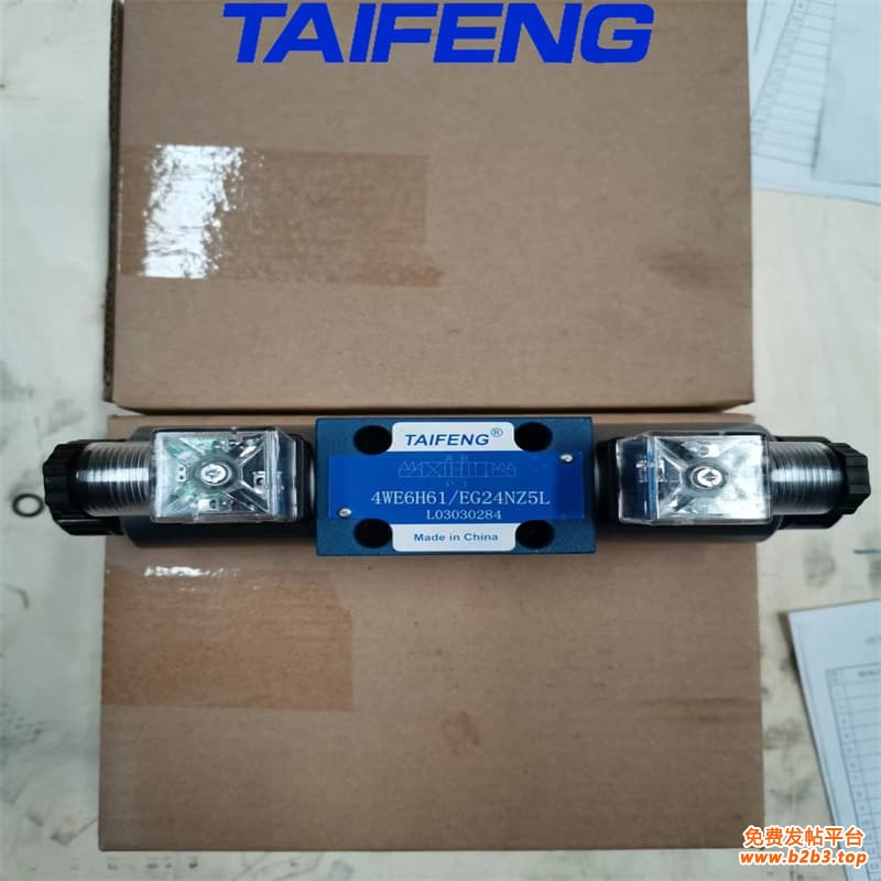 4WE6型电磁换向阀是用电磁铁直接推动阀芯移位工作的小型方向控制阀,主要用于控制液体的通断和流动方向,也可以作为先导控制阀,以控制各种大通径的液压阀(电液换向阀或二通插装阀),实现对大功率液压阀的先导控制。4WE6G-50型号是三位四通电磁换向阀。