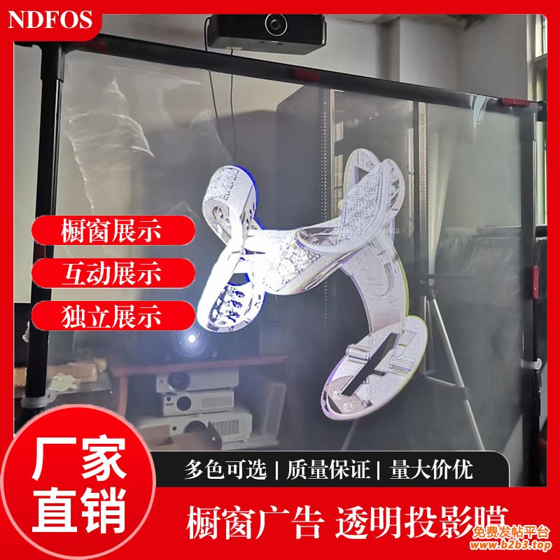 全息透明膜:透明度约90%,适用于贴在透明玻璃上,使投影图像在室内和室外都可见。未投影时,外部人员可以看到室内物品或陈列品。