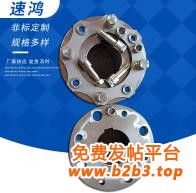 三、膜片联轴器至少由一个膜片和两个轴套组成。膜片被用销钉紧固在轴套上一般不会松动或引起膜片和轴套之间的反冲。有一些生产商提供两个膜片的,也有提供三个膜片的,中间有一个或两个刚性元件,两边再连在轴套上。
