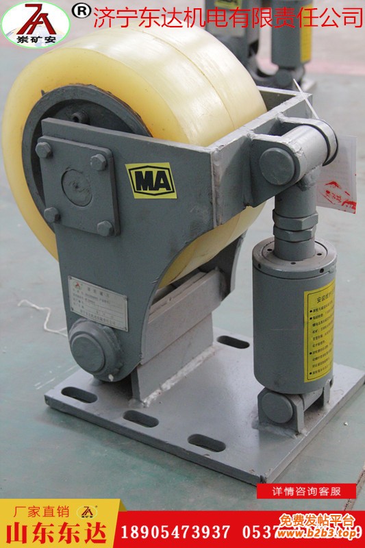 3、缓冲器复位压力小,可有效地避免滚轮与罐道产生异常碰撞。通过杠杆传递到减震筒上,同时起到导向、缓冲与稳定作用。