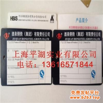 上海平湖实业有限公司随着冶金企业对产品标识的环保要求,钢材条码管理系统的要求,以及对产品包装的高档次要求,我公司在生产传统铝质标牌的基础上,与国内知名合成材料研究机构合作,陆续开发出了系列耐撕扯的耐高温纸质标牌,该标牌采取复合纸合成技术制造,具有耐高温,耐雨淋的特点,同时成本又低于铝标牌,故而广泛的应用于中厚板、线材、棒材、型材、热轧卷、彩涂钢、钢坯、铝锭、铝板等众多的冶金产品之上,极大地提升了钢铁企业的产品包装档次。钢筋耐高温纸标牌,钢筋纸标牌,钢筋纸吊牌,解决了目前钢厂焊挂的铝合金标牌 ,难以印刷条形码的难题,采用耐高温纸标牌后,钢材条码管理变得简单易行,极 大的推进了了钢铁冶金企业对产品标识实施条码信息化管理的趋势。 该标牌可耐300度高温热辐射,不碳化发黑,抗拉撕,抗腐蚀,室外环境放置12个月,字体不变色。可充分满足钢铁冶金企业对钢材标识的要求,是替代铝合金标 牌的发展趋势。