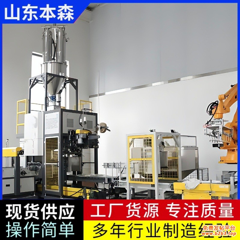 本森智能装备(山东)有限公司提供的25kg阻燃剂全自动包装生产线,集成了自动上袋、称重、灌装、封口、码垛及入库功能,形成全流程自动化作业。